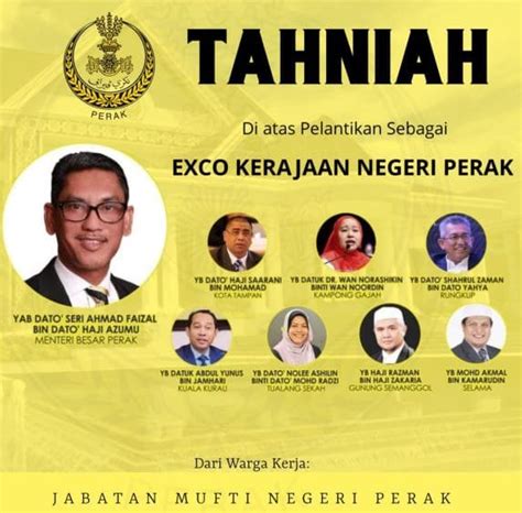Yb dato ahmad suaidi bin abdul rahim dilantik setiausaha kerajaan negeri yang baharu 18 disember 2019. Perak press senarai portfolio exco negeri perak menteri facebook. Lima daripada exco adalah adun umno, iaitu mohd zolkafly, shahrul. 1 muka baru antara 5 exco perak angkat sumpah. / empat ahli dewan undangan negeri (adun) perak daripada umno dan seorang daripada parti pribumi bersatu malaysia (bersatu), mengangkat sumpah jawatan ahli majlis mesyuarat kerajaan negeri (exco), di istana iskandariah di sini, hari ini.