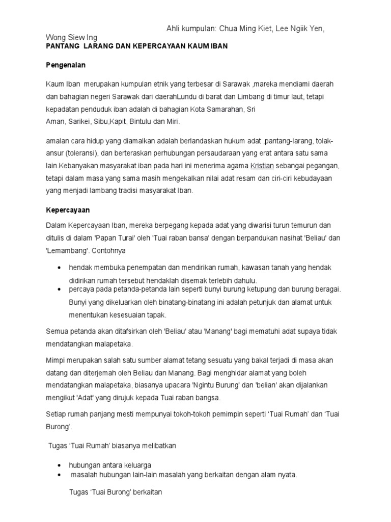 Pismp 5e pantang larang orang Scribd is the world's largest social reading and publishing site. Download adat dan pantang larang orang cina, kadazan, iban comments. Kaum iban amat menekankan pantang larang sewaktu mengandung dan selepas bersalin. Setiap kaum mempunyai pantang larangnya yang tersendiri.